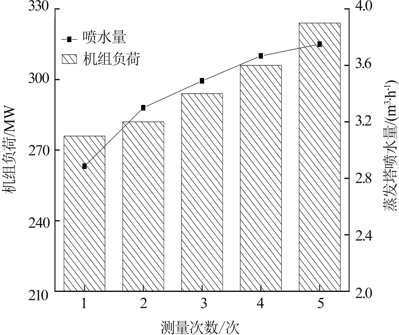 由于燃煤电厂脱硫废水成分复杂,具有含盐量高、腐蚀性强、易结垢等特点,自从“水污染防治行动计划”颁布以后,脱硫废水零排放已逐渐成为电厂污染物深度治理的必然趋势。燃煤电厂脱硫废水零排放处理采用旁路烟道蒸发处理工艺,其具有占地面积小、投资和运行成本低、运维方便、不产生新的固废等优点,已逐渐成为脱硫废水零排放的主流技术。某2×350 MW燃煤电厂采用旁路烟道喷雾干燥蒸发技术对脱硫废水进行零排放处理,每台机组配置2台2 m3/h双向流体雾化蒸发塔。对该工艺系统进行性能试验研究,结果表明蒸发塔喷水量满足设计要求,入口烟气温度为333~347 ℃,出口烟气温度为152~167 ℃,蒸发1 m3废水抽取高温烟气平均约10 275 Nm3/h。单台机组喷水量为3.1~3.9 m3/h时,蒸发塔入口烟气量占机组总烟气量的3.2%~3.7%,锅炉热效率下降约为0.29%~0.33%,处理吨水发电煤耗增加值为0.27~0.31 g/(kW·h),运行成本为67.56~71.36 元/(m3·h),各项性能指标满足设计要求,实现了脱硫废水高效低成本零排放,系统运行效果良好。