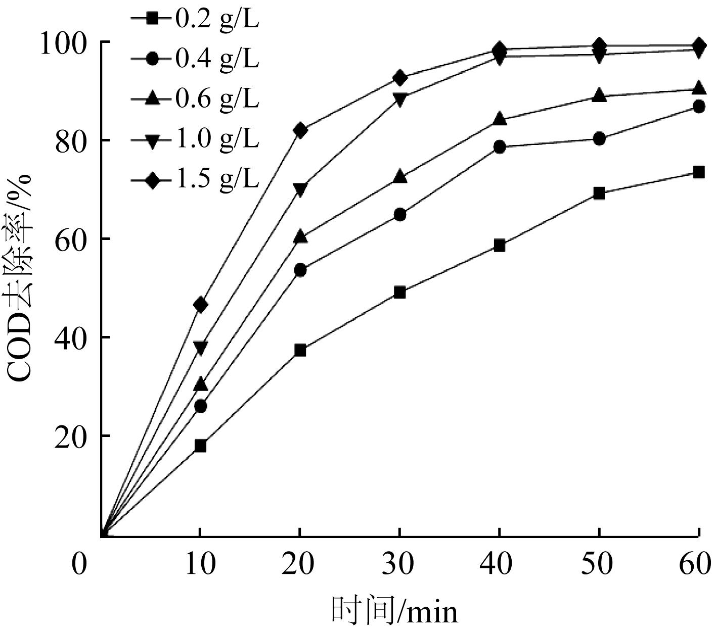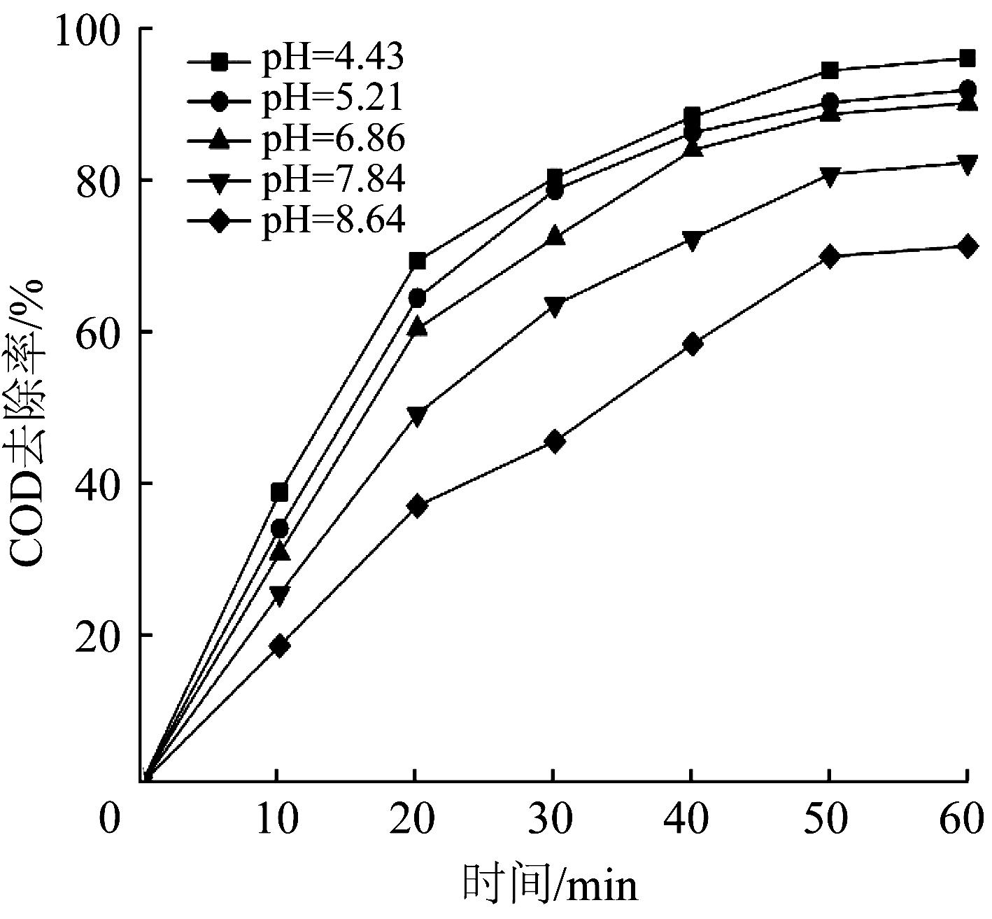 本研究通过简便的水热和煅烧两步法合成了CeO2,采用扫描电子显微镜(SEM)、X射线衍射(XRD)对CeO2的微观形貌和晶型结构进行了表征;为提高实际制药废水深度氧化处理的效果,Oxone试剂被引入UV/CeO2氧化体系。研究结果表明,UV辐照协同CeO2可高效活化Oxone试剂产生SO4 ·-、SO5 ·-和·OH等多种活性氧化物质,实现制药废水深度氧化的目的;溶液pH、Oxone用量、CeO2用量、反应温度等因素影响制药废水COD和TOC的去除效果,在制药废水初始COD为326 mg/L、TOC为132.6 mg/L、Oxone质量浓度为1.0 g/L、CeO2质量浓度为0.6 g/L、pH为6.86、温度为30 ℃、反应时间为60 min时,UV/CeO2耦合Oxone氧化工艺对实际制药废水COD的去除率达到90.21%,TOC去除率为76.99%。UV/CeO2耦合Oxone氧化具有潜在的工业应用前景。