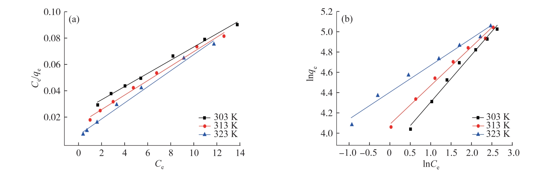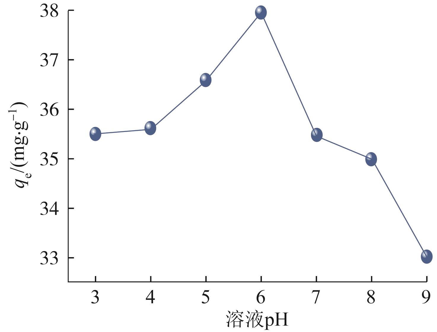 利用溶剂热法制备了Ni-MIL-53(Fe)复合材料,通过改变液相体系的pH、温度、浓度等条件对Ni-MIL-53(Fe)吸附亚甲基蓝(MB)的性能进行了探究。结果表明,Ni-MIL-53(Fe)吸附MB的最优pH为6,在一定的考察区间内,吸附量随MB初始质量浓度和温度的升高而逐渐升高。Ni-MIL-53(Fe)对MB的吸附过程符合Langmuir等温吸附模型和二级动力学模型,323 K下最大理论吸附量可达198.8 mg/g。303、313、323 K温度下Ni-MIL-53(Fe)吸附MB的ΔG均小于0,证明该复合材料吸附MB的过程是自发进行的;ΔΗ>0,说明该复合材料对MB的吸附是吸热反应。Ni-MIL-53(Fe)再生循环利用5次后对MB的去除率依然良好,说明该复合材料循环利用性能良好。