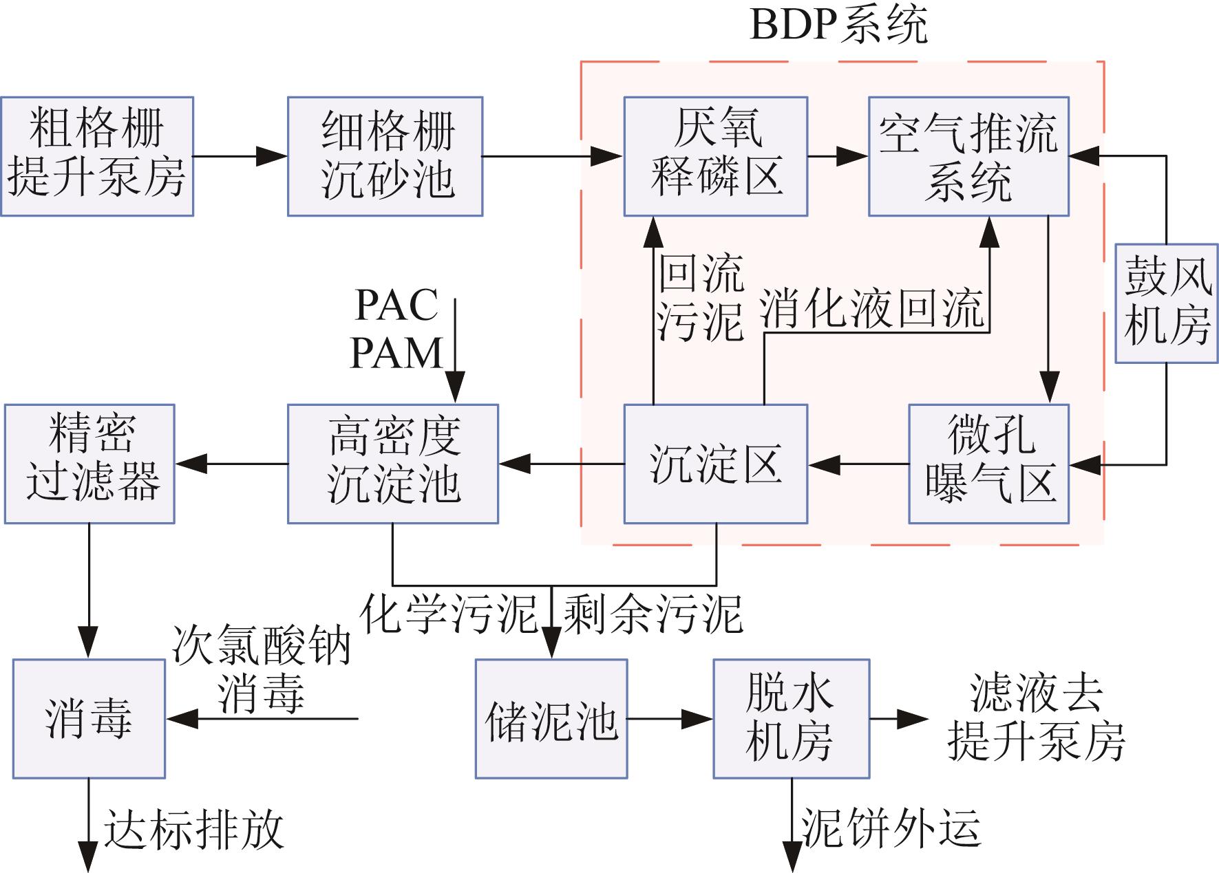 武汉市黄陵污水处理厂主要处理沌口开发区市政管网收集的城市污水,水质显著特点是BOD5/TN低,不补投碳源的情况下处理难度大。二期扩建工程采用生物倍增工艺(BDP),在DO<0.5 mg/L,MLSS为5~8 g/L的工况下运行,已稳定运行近2 a,出水水质稳定,能满足稳定达标排放。实践表明,当进水1.9≤BOD5/TN≤2.8,不补投碳源的情况下,系统对COD和BOD5的最高去除率分别达85%和95%,对NH3-N、TN、TP的去除率最高可达到100%、80%、70%,表现出在处理典型低C/N市政污水方面的优越性。BDP系统与同规模传统AAO污水处理工艺进行比较,可大大降低曝气风机能耗和生物处理单元需要的有效容积,设备能耗可降低约28%,且不需投加碳源用于脱氮,在低C/N的污水处理厂改扩建项目中具有一定的借鉴意义。