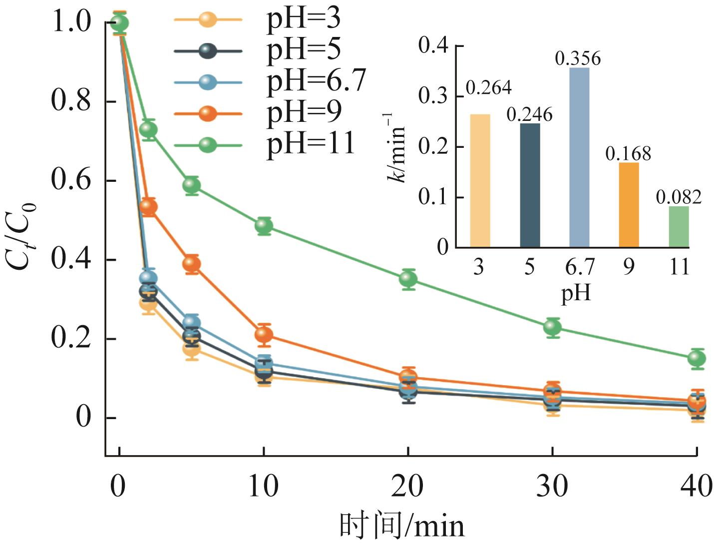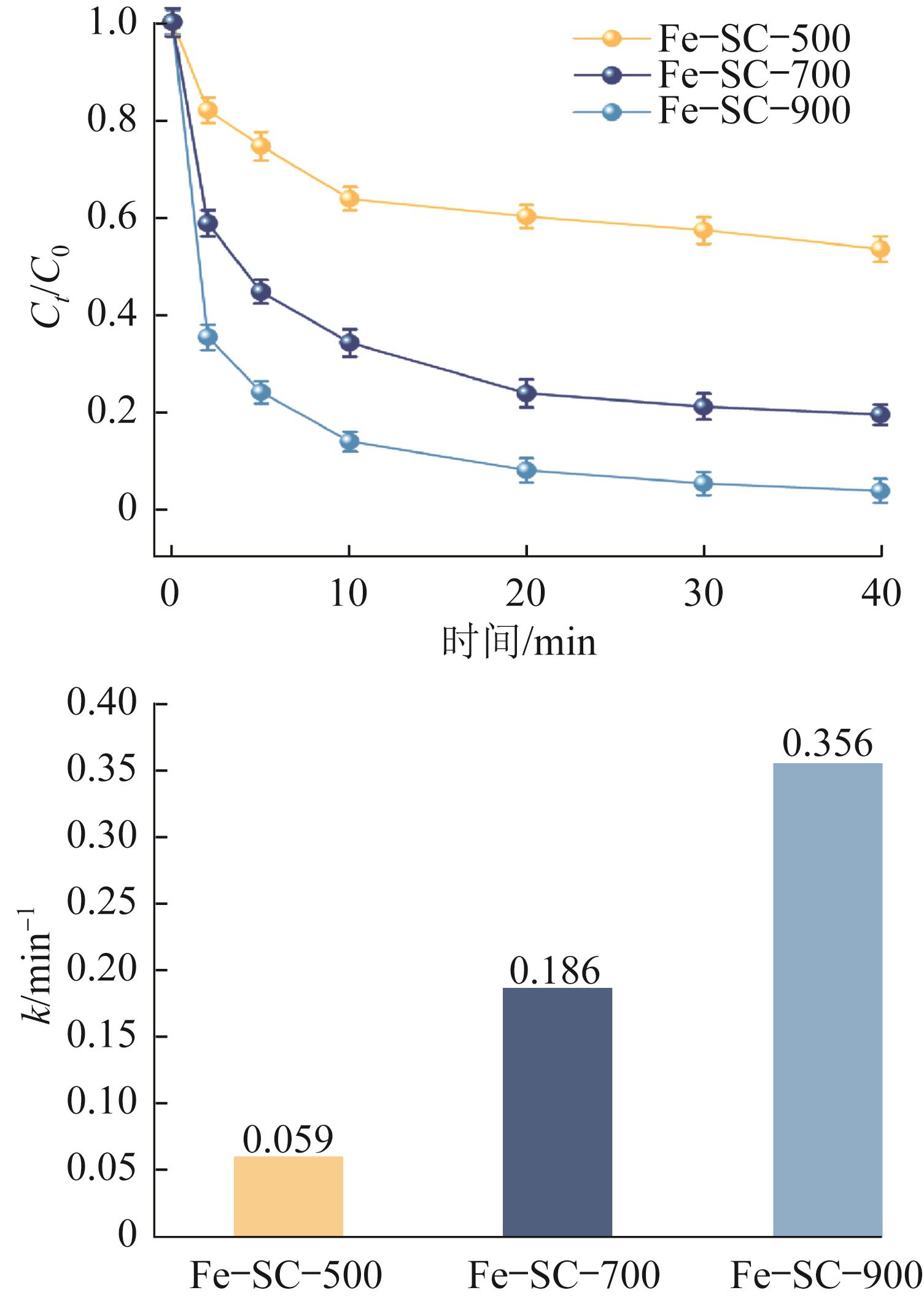 非均相铁基材料因具有效果显著、成本较低等优点被广泛应用于活化过一硫酸盐(PMS)降解有机污染物,而如何有效促进催化剂中Fe2+/Fe3+循环从而提升其活化性能一直是研究的重点。以卡拉胶作为天然的S源和C源,采用一步煅烧法制备了铁硫碳纳米材料(Fe-SC-x),通过扫描电镜和X射线衍射等表征手段分析了Fe-SC-x的微观形貌及物质组成,并将其应用于活化PMS降解抗生素污染物磺胺甲 唑(SMX),以评估其催化性能。结果表明,在900 ℃下制备的催化剂Fe-SC-900催化效果最佳,其活化PMS在40 min时可降解99.8%的SMX。此外,Fe-SC-900/PMS体系能够抵抗共存阴离子和天然有机质,具有良好的实际应用潜力。降解机理实验表明,·OH、SO4 ·-、O2 ·-和1O2均存在于Fe-SC-900/PMS体系中,且1O2和SO4 ·-对SMX的降解起主导作用。