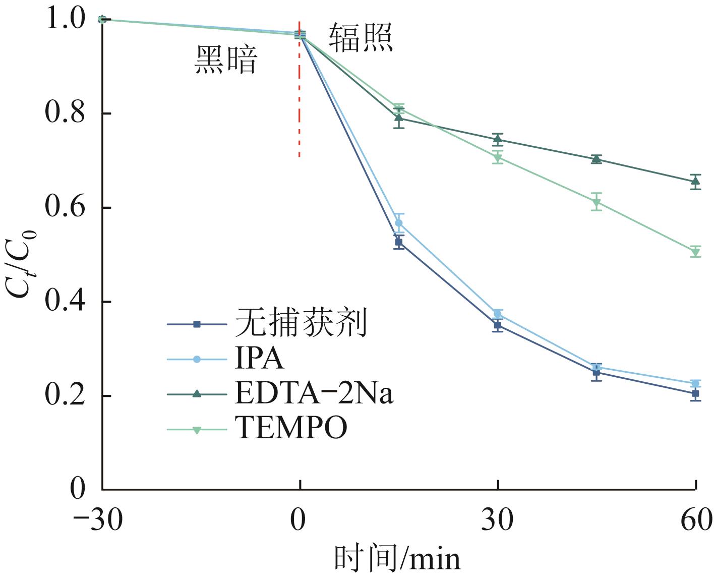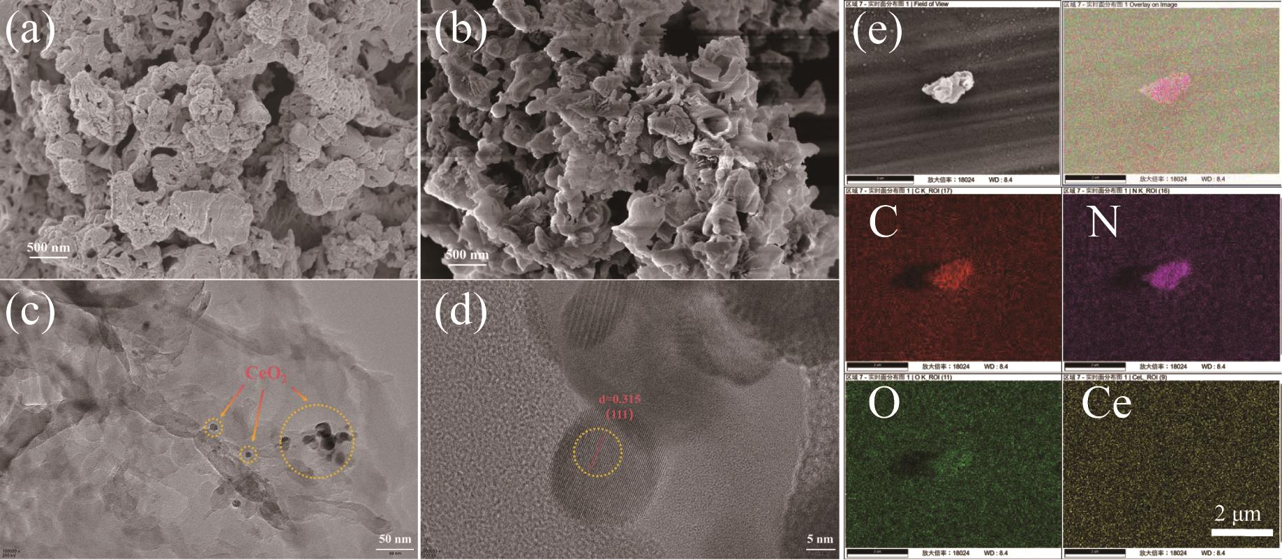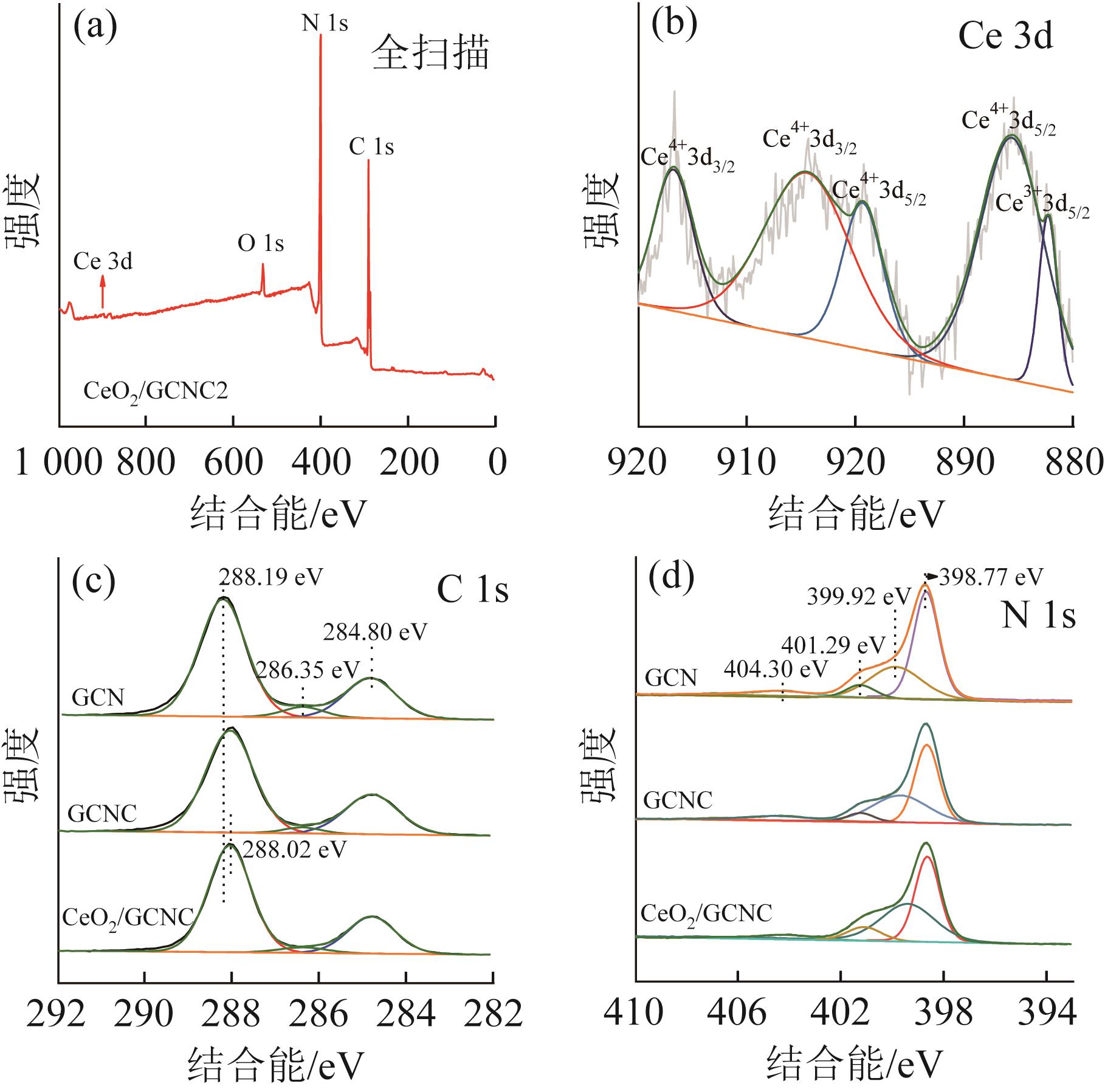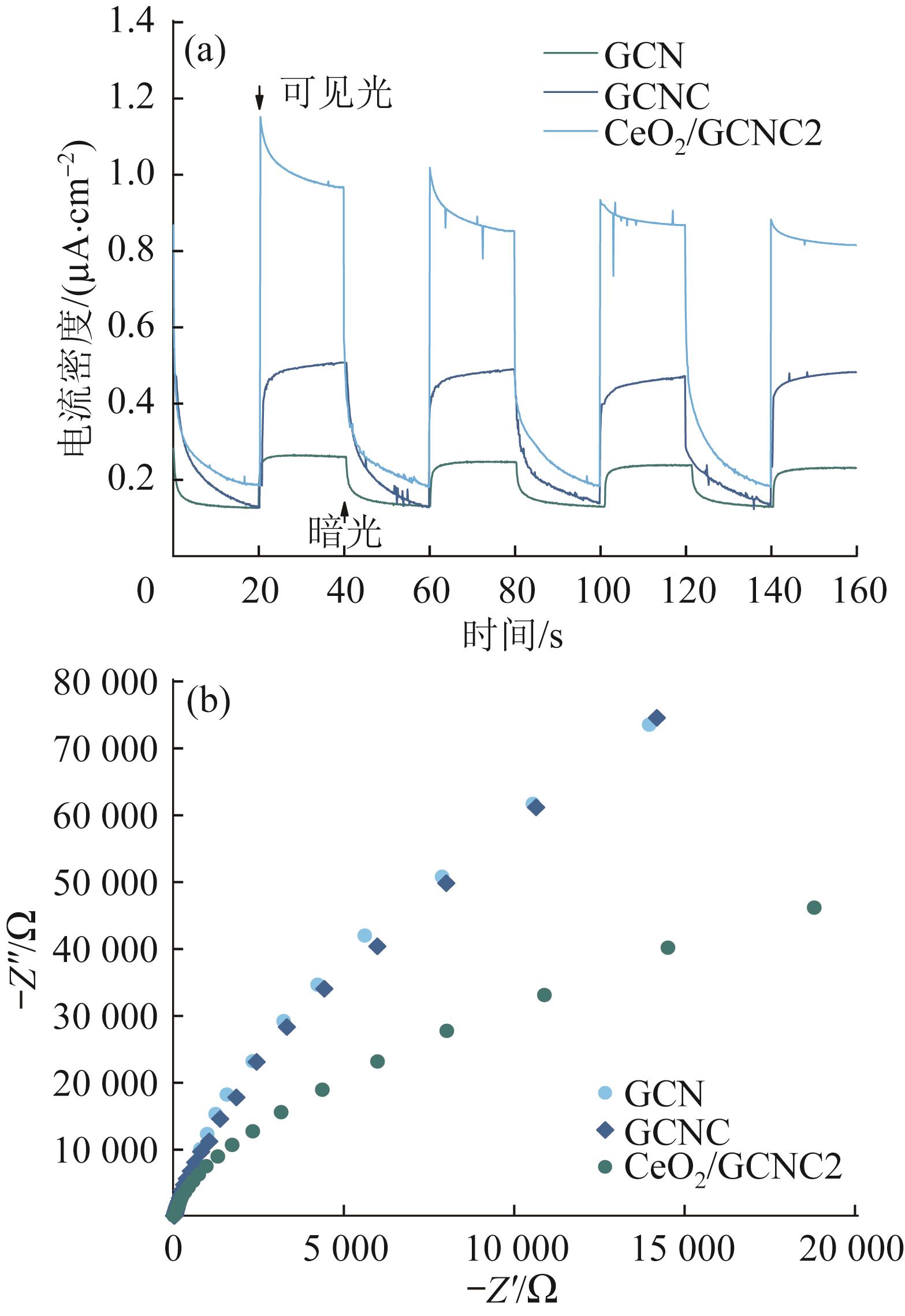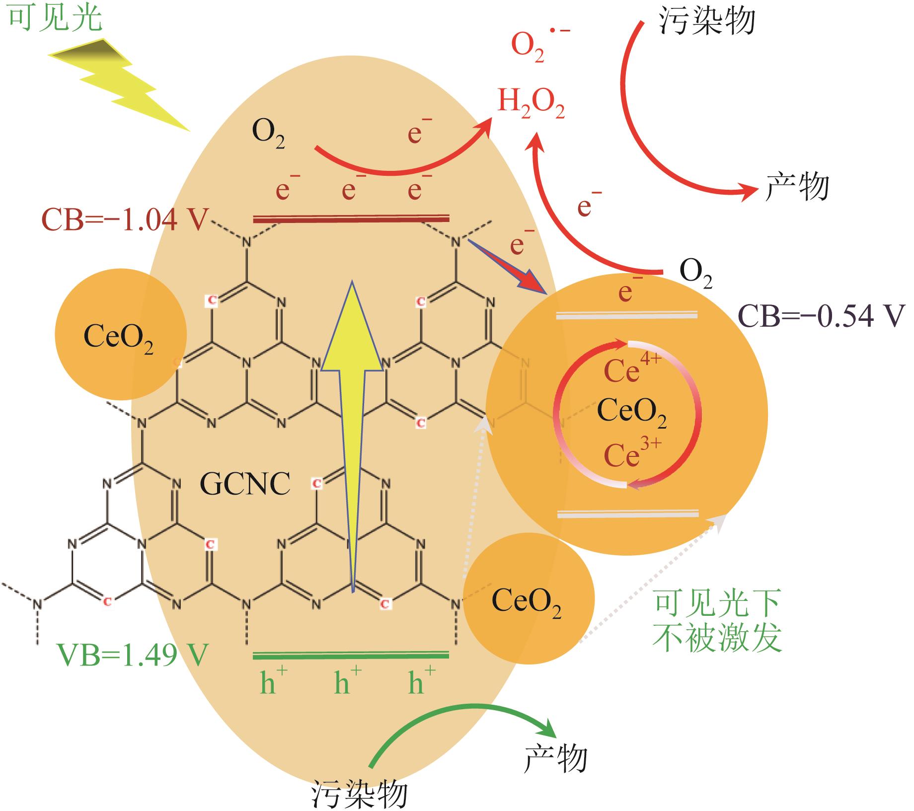 强化焦化废水深度处理对于实现焦化废水零排放至关重要。流程短、成本低、效率高的光催化技术已在水中有机物去除方面展现出应用潜力。在众多光催化剂中,基于石墨相氮化碳(g-C3N4,GCN)所开发的新型光催化剂备受青睐。利用一步水热与煅烧法合成了负载CeO2的C自掺杂氮化碳(CeO2/GCNC),并用其处理焦化尾水。CeO2/GCNC2展现了良好的光催化去除焦化尾水中COD的性能,120 min内对焦化尾水中COD的去除率达到了56.79%,相对于氮化碳单体提高了5.3倍。其中,CeO2/GCNC2优越的光催化性能得益于C自掺杂拓宽了材料的光利用范围和负载的CeO2在光催化过程中作为助催化剂,不仅可以聚集光激发电子,其独特的Ce4+/Ce3+氧化还原对的存在可作为电荷迁移介质来促进光生电子的迁移,从而提高了光生电子空穴对的分离效率。
