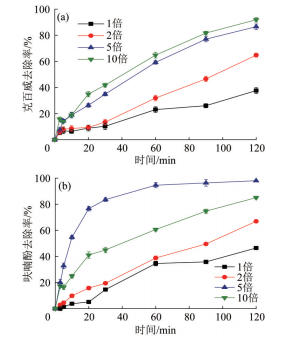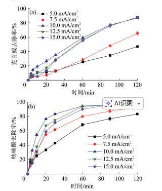 针对种衣剂废水有机物浓度高、成分复杂、毒性强、可生化性差等难题,采用混凝+电催化氧化组合工艺进行预处理,旨在降低废水毒性并提升其可生化性。首先,优化了混凝工艺条件,确定在废水初始pH=8、聚合氯化铝(PAC)和聚丙烯酰胺(PAM)投加量分别为2.5 g/L和2.0 mg/L时,混凝效果最佳,废水透光率和DOC去除率分别达到88.4%和54.5%,B/C提升至0.28。随后,系统考察了电催化氧化工艺的关键参数,在将混凝出水稀释5倍,以0.04 mol/L Na2SO4作为支持电解质,电流密度为10 mA/cm²,废水初始pH=8,反应时间为120 min的最佳条件下,电催化氧化工艺对特征污染物克百威和呋喃酚的去除率分别达到92.0%和99.2%,COD去除率为63%,同时B/C显著提升至0.53。混凝+电催化氧化组合工艺显著改善了种衣剂废水的可生化性,为后续生化处理工艺的高效稳定运行创造了良好条件。