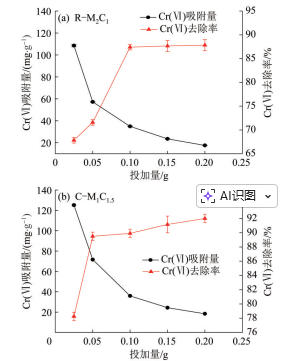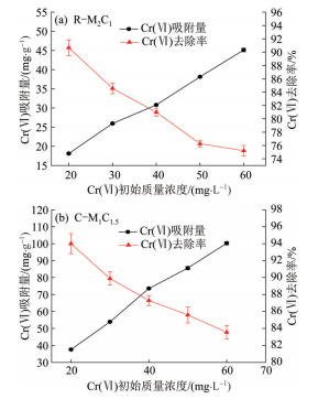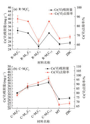 To address the issues of severe heavy metal wastewater pollution and the scarcity of effective treatment methods, the typical pollutant Cr(Ⅵ) was selected as the research object, montmorillonite (MT)/modified biochar (ZBC) composites were prepared via pyrolysis and intercalation methods, respectively, and the microstructure of the composite materials was characterized. The effects of factors such as MT-to-ZBC compounding ratio, adsorbent dosage, pH, and initial concentration on the Cr(Ⅵ) adsorption performance of the composite materials were systematically investigated. Moreover, the adsorption kinetics, isotherms, and thermodynamic characteristics were thoroughly discussed. The results indicated that the MT/ZBC composite materials prepared by pyrolysis and intercalation methods exhibited rough surface, certain pores, and rich surface functional groups. The layered structure of MT was successfully combined with the pore structure of ZBC. Both composite materials demonstrated good adsorption effects on Cr(Ⅵ), outperforming the single ZBC and MT materials. The optimal m(MT)∶m(BC) ratios for the pyrolysis and intercalated composites were 2∶1 and 1∶1.5, respectively. An acidic environment (pH 2-4) was conducive to the adsorption of Cr(Ⅵ) by the composite materials. The adsorption capacity of Cr(Ⅵ) was positively correlated with the initial Cr(Ⅵ) concentration and negatively correlated with the adsorbent dosage. The adsorption process conformed to the pseudo-second-order reaction kinetics model and the Freundlich isothermal model, indicating that the adsorption was mainly chemical and occured on heterogeneous surfaces. With the increase of the number of cycles, the adsorption performance of the two composite materials for Cr(Ⅵ) gradually decreased.