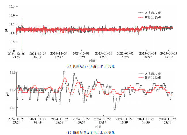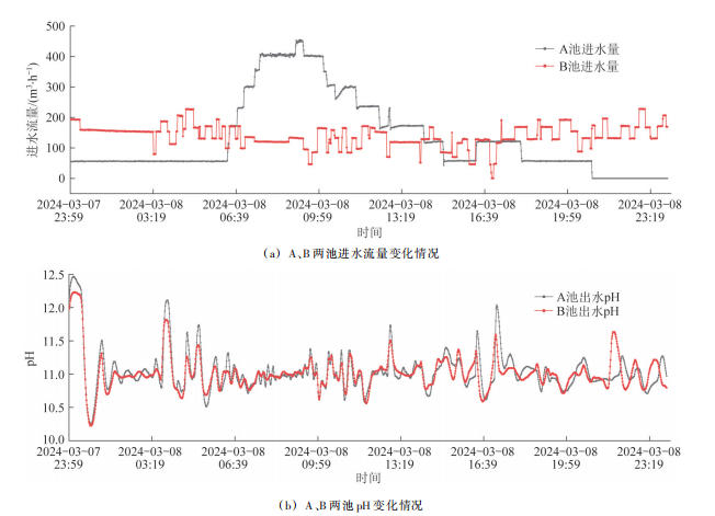 污水处理酸碱中和反应具有强非线性、时变滞后、易受多重干扰等特性,传统PID控制方法效果不佳。构建基于机器学习与模型预测的智能控制系统,通过整合历史数据建模,采用前馈补偿控制方法,借助门控循环单元(GRU)和全连接层(FC)等结构,将进水流量波动作为扰动变量,通过数学模型动态预测补偿值,并结合PID反馈调节形成复合控制系统,提升了pH控制的精准度与稳定性。同时,采用以智能计量阀为核心的精密流量控制系统,该系统通过RS485通讯方式实现各组件的协同和与上位机的连接,依据前馈补偿控制方法精准计算出的氢氧化钠投加量进行全量程范围(100∶1)内的精确调节,可将pH控制精度提升至±0.15以内,系统抗干扰能力显著增强,氢氧化钠投加量大幅降低22%,具备超宽量程、低噪声、低功耗、高可靠性等显著优势。