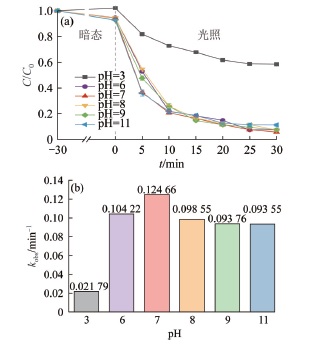 采用研磨-焙烧法制备了CuFe2O4/g-C3N4(CFCN)异质结催化剂,并采用XRD、SEM、UV-Vis、XPS对其物相、形貌与光电化学性质进行表征。在可见光照射下,考察了该催化剂活化过一硫酸盐(PMS)降解水中磺胺甲 唑(SMX)的性能。结果显示,当复合催化剂中CuFe2O4质量分数为80%、投加量为1.0 g/L,SMX初始质量浓度为10 mg/L,PMS投加量为0.4 mmol/L,pH=7,温度为20 ℃(室温)时,可见光下反应30 min,SMX去除率可达94.42%,拟一级反应速率常数(k obs)为0.124 66 min-1。猝灭实验结果表明,SMX的降解是由体系中5种活性物种共同作用的结果,相对贡献率大小顺序:1O2>h+>O2 ·->·OH>SO4 ·-。另外,反应前后催化剂的XPS分析证实,CuFe2O4/g-C3N4异质结催化剂中Cu+/Cu2+和Fe2+/Fe3+氧化还原电对间存在协同作用,可以实现循环再生,从而持续活化PMS产生活性物种。该研究构建了一种高效且稳定的Vis/CFCN/PMS体系,为降解SMX等有机污染物提供了一种新思路。