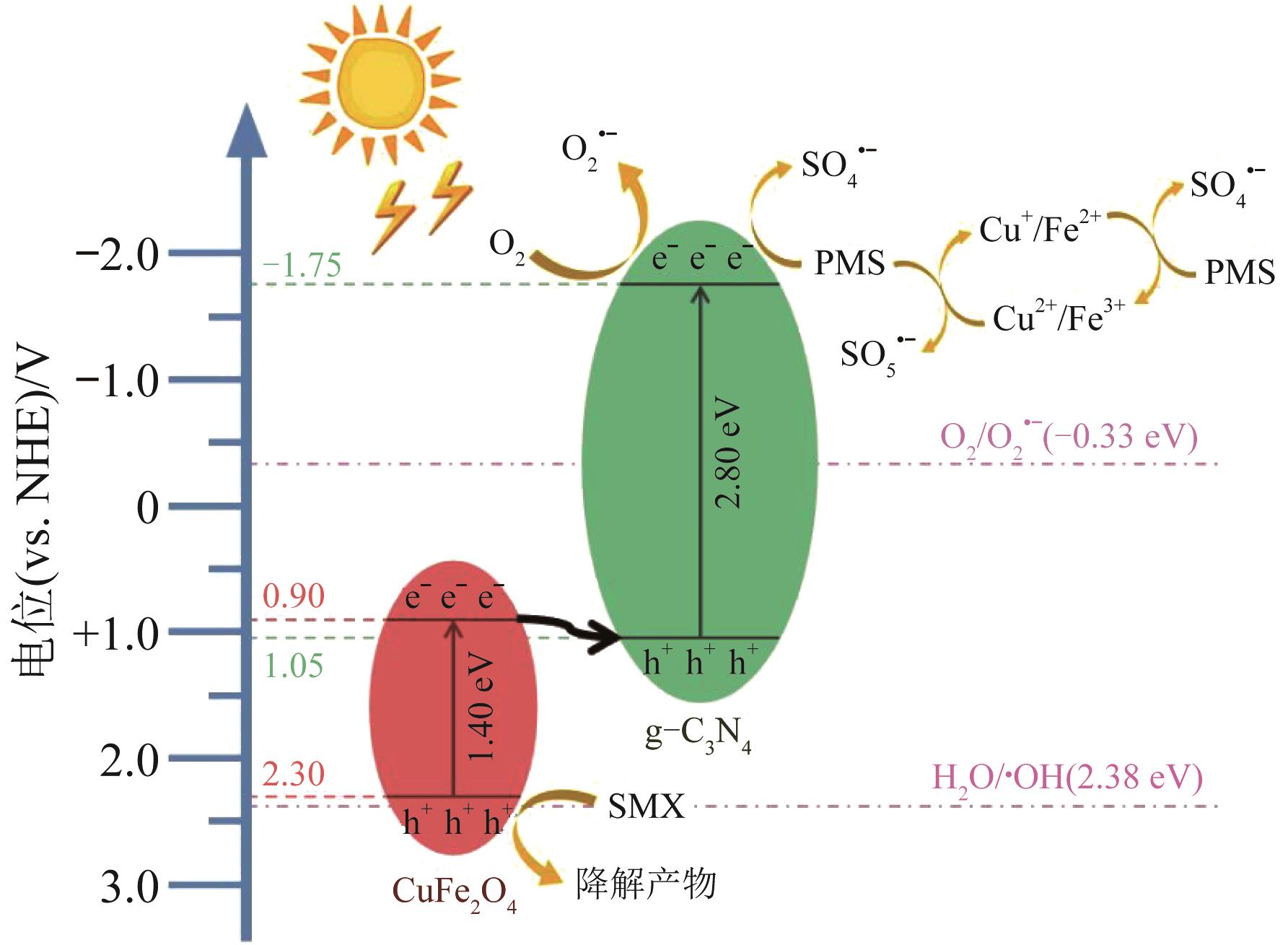 关键词: 过一硫酸盐, 异质结, 光催化, CuFe2O4, g-C3N4