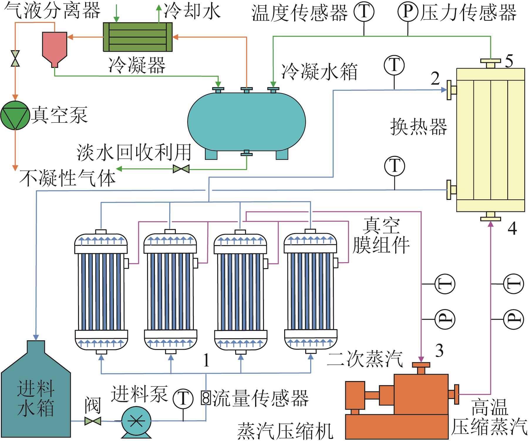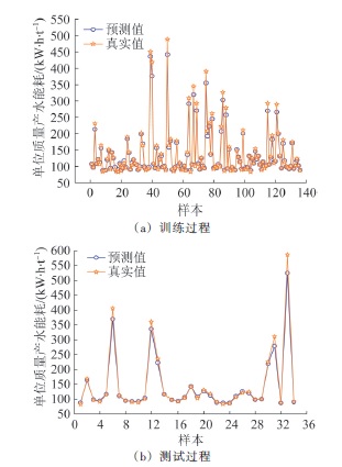 机械蒸汽再压缩(Mechanical vapor recompression,MVR)真空膜蒸馏系统是处理硫酸废液的新技术,对其进行性能预测是实现系统智能化与高效稳定运行的关键。搭建了一套MVR真空膜蒸馏系统试验装置,以硫酸溶液为处理对象,开展了不同工况试验(进料硫酸质量分数5%~30%、温度70~90 ℃、流量5~25 m3/h、蒸汽压缩机频率5~50 Hz),共获得了170组有效数据样本。在此基础上,构建了多层感知器(Multi-layer perceptron,MLP)-支持向量回归(Support vector regression,SVR)预测模型,用于预测系统单位质量产水的能耗。选取136、34组数据分别作为训练集、测试集对模型进行训练和测试。结果表明,MLP-SVR模型对系统单位质量产水能耗的预测值和真实值高度吻合,其训练和测试过程的R 2分别达到0.998和0.980,平均绝对误差分别为2.749 kW·h/t和6.201 kW·h/t,相对误差均小于20%。模型在保持高拟合精度的同时表现出良好的泛化能力。因此,所建立的MLP-SVR模型能够准确、高效地预测MVR真空膜蒸馏系统单位质量产水能耗,为系统优化与智能化运行提供可靠的数据支撑。