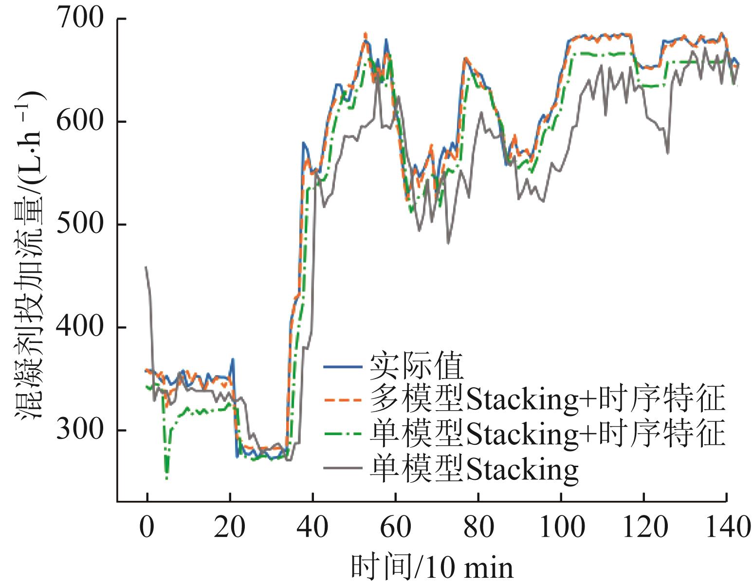 In order to solve the problem of excessive or insufficient dosing of coagulant in water plants, and to be compatible with and respond to the change of raw water quality in time, the intelligent dosage prediction model of coagulant with the integrated learning framework was constructed. In the data preprocessing stage, the turbidity removal rate was introduced to filter the original data set to reduce the proportion of unreasonable data in the training data. In characteristic engineering, the nonlinear relationship among inlet water quality,quantity and coagulant dosage was established by feedforward control theory. Meanwhile, the time sequence characteristics were obtained by autocorrelation and partial correlation coefficient analysis and used as model input. The system models were divided into long-term model, medium-term model, and short-term model. Each model used the integrated learning framework of Stacking. The system model outputted the predicted value of coagulant addition through weight distribution. The results showed that the introduction of time series features significantly improved the prediction performance of the model. With the integrated learning framework, the prediction and evaluation indexes MAPE and R 2 of the mixed model dosage were 3.78% and 0.96 respectively, and the predicted dosage of coagulant was about 3.12% less than the actual value. It can provide a feasible solution for water plants to achieve accurate dosing and reduce drug consumption