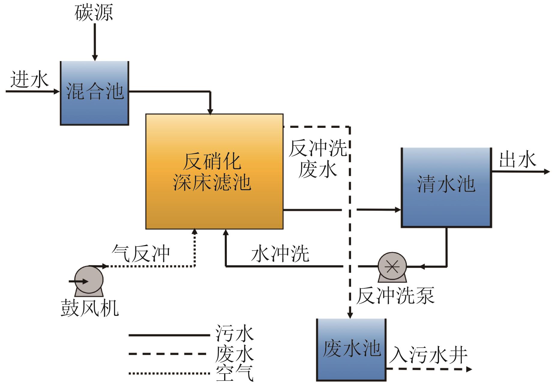 In order to meet the requirements of sewage treatment capacity and treatment standards, a sewage treatment plant in Shandong was upgraded and reconstructed based on the Class A water quality standard of “Pollutant Discharge Standards for Urban Sewage Treatment Plants” (GB 18918-2002). The advanced treatment process of “high efficiency sedimentation tank+denitrifying deep bed filter” was adopted, and the sewage treatment facility of “pretreatment+AAO+high efficiency sedimentation tank+denitrifying deep bed filter+ultraviolet/sodium hypochlorite disinfection” with a scale of 60 000 m3/d was expanded. The pollutant removal efficiency and carbon emission distribution during sewage treatment process before and after renovation were analyzed. The results showed that the removal effect of pollutants was further strengthened and consolidated after the transformation, and the average effluent TN and TP were 7.09 mg/L and 0.06 mg/L, respectively, and the removal rates of TN and TP reached 94.7% and 99.1%, respectively. The effluent quality(except TN) reached the Class Ⅳ standard of the Environmental Quality Standards for Surface Water(GB 3838-2002). CH4 contributed the most to carbon emission before and after the transformation. After the transformation, the proportion of electricity consumption in the overall carbon emission increased by 16.49%, while the carbon emission generated by the consumption of water agent decreased by 27.69%, from 0.585 kg/m3 to 0.423 kg/m3.