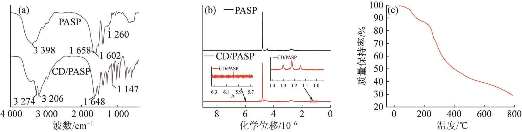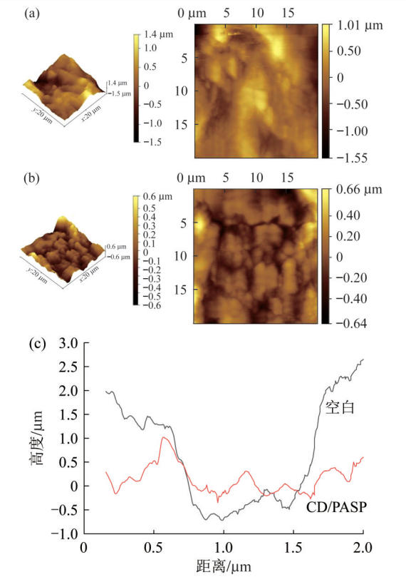 合成了一种新型聚天冬氨酸衍生物(CD/PASP),并将其作为绿色、高效、经济的缓蚀剂,用于抑制Q235低碳钢在0.5 mol/L磷酸溶液中的腐蚀行为。通过红外光谱(FTIR)和核磁氢谱(1H NMR)验证了CD/PASP的结构,热重分析表明其在200 ℃以内具备良好的热稳定性。失重实验显示,当CD/PASP添加量为80 mg/L时,其对Q235钢的腐蚀具有抑制作用,缓蚀率(η)可达85.19%。CD/PASP在Q235钢表面的吸附符合Langmuir吸附等温模型,吸附自由能(ΔG ≈-38.92 kJ/mol)表明其吸附为自发过程,并同时包含物理与化学吸附机制。极化曲线和电化学阻抗谱表明,CD/PASP是一种混合型缓蚀剂,能在金属表面形成一层保护膜,有效阻滞腐蚀过程。表面分析(SEM、AFM、XPS等)进一步揭示,CD/PASP通过分子中的氮杂原子与钢基体形成N—Fe化学键,在金属表面形成疏水保护层,有效阻隔腐蚀介质并抑制电荷转移过程。CD/PASP是一种高效钢铁缓蚀剂,在工业金属防腐领域具有很大应用潜力。