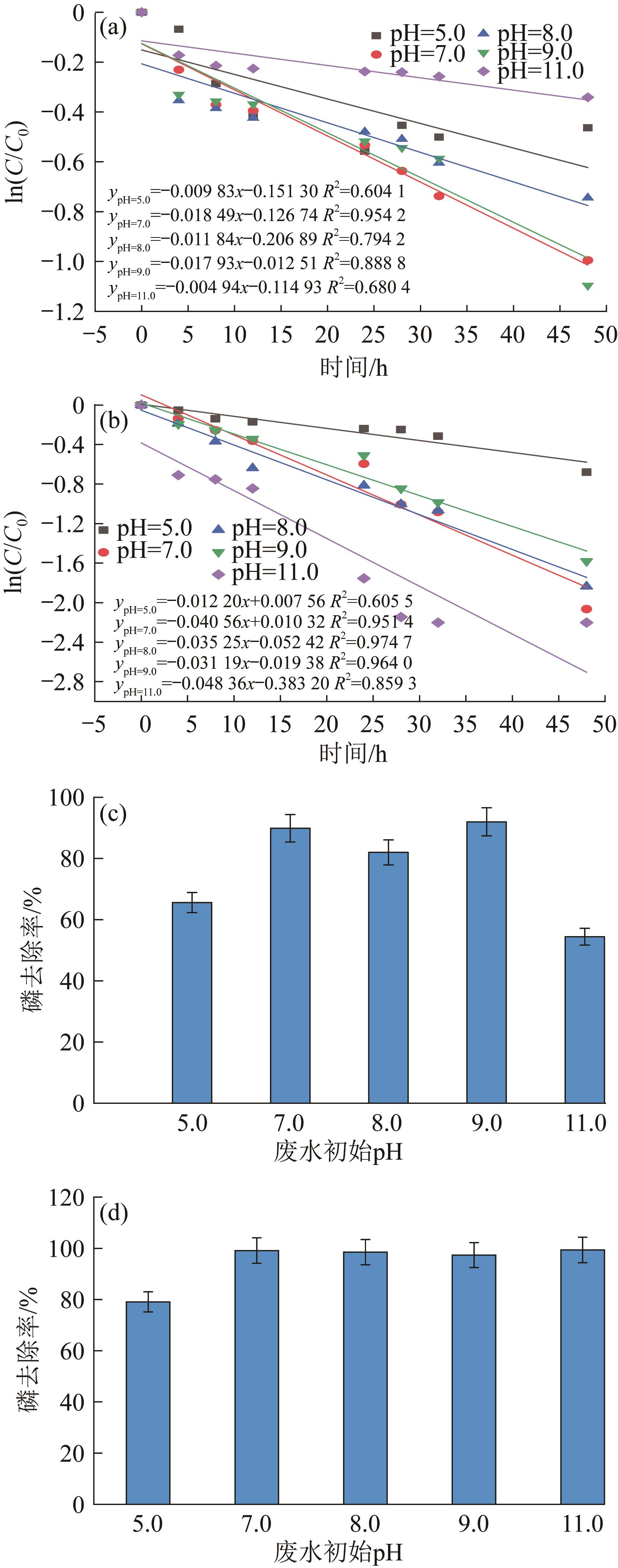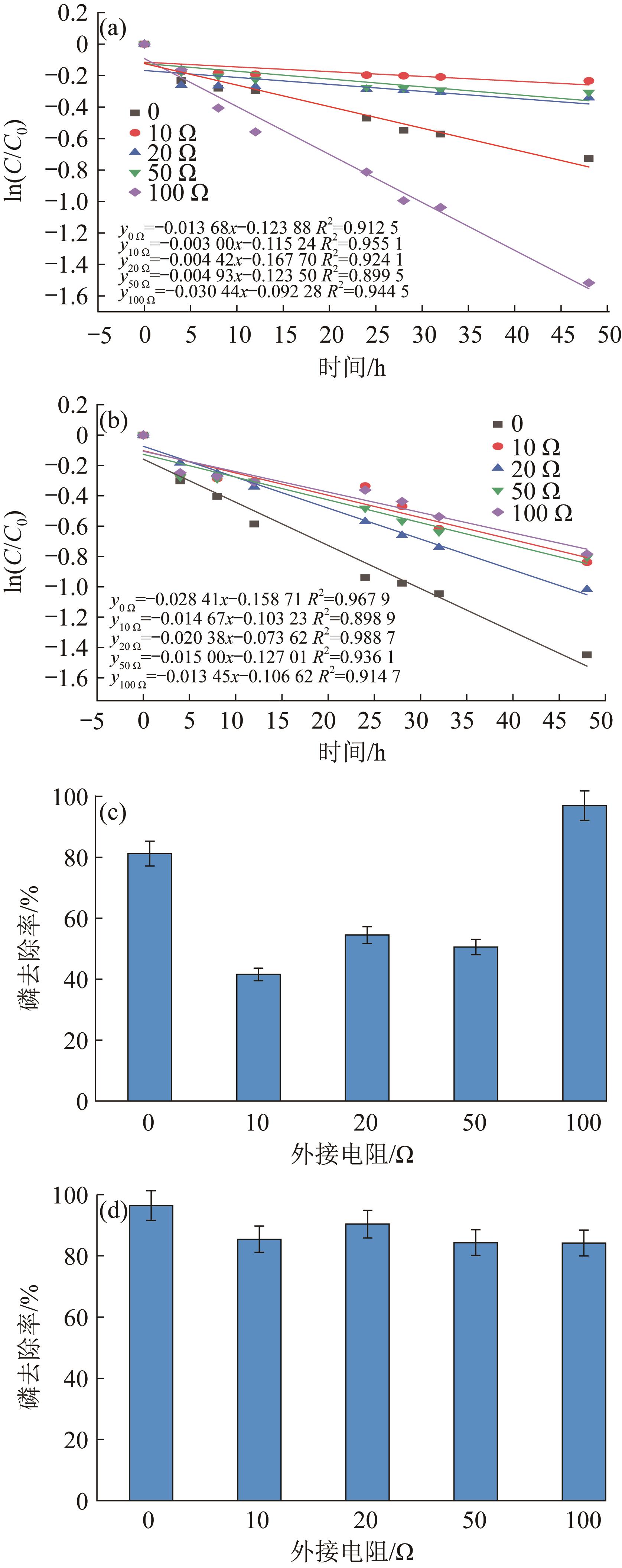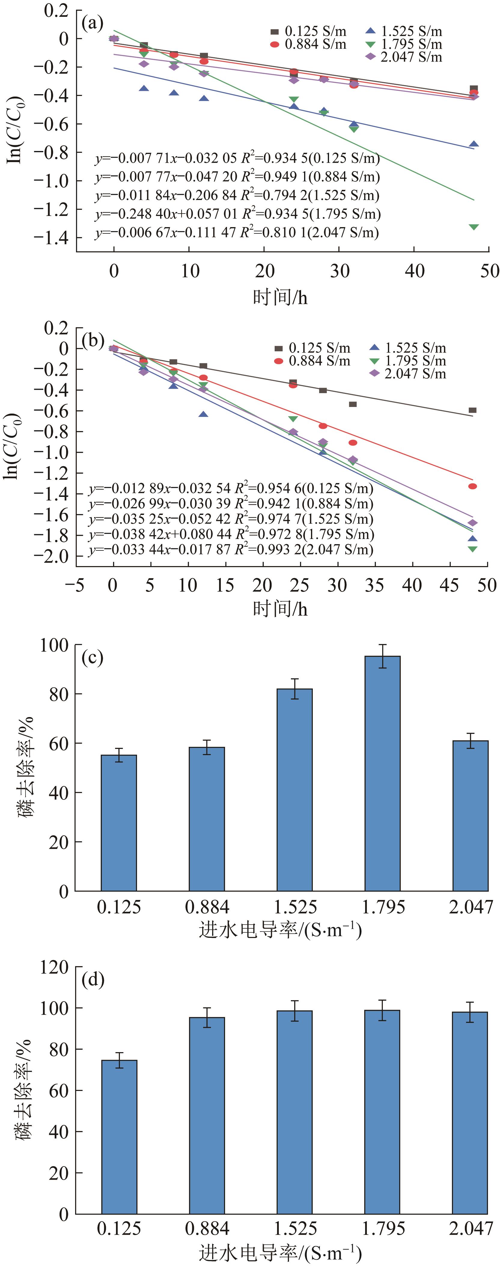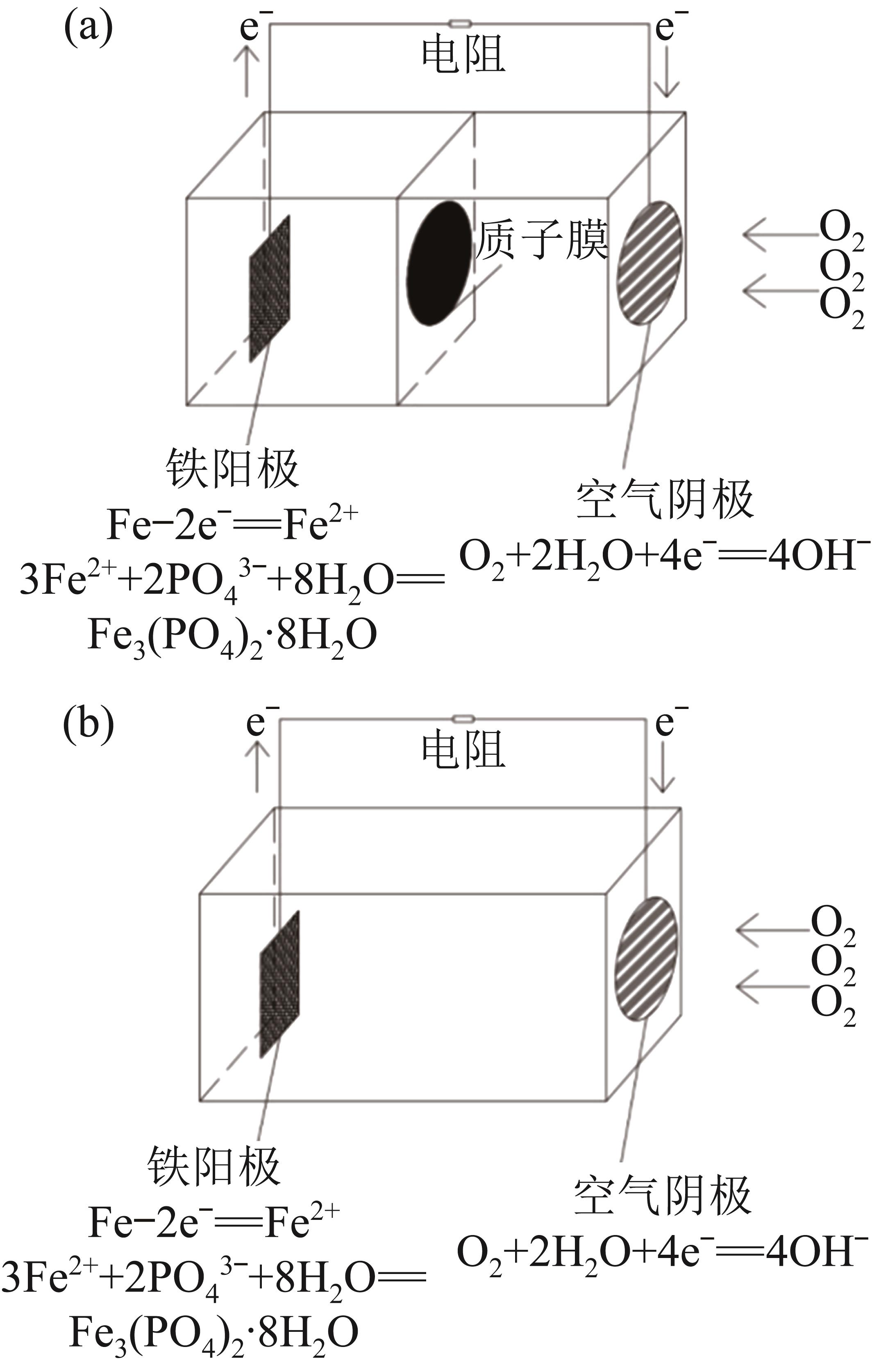 当以含磷废水为电解液时,铁-空气电池可利用自身所产亚铁离子(Fe2+)与废水中的磷酸盐反应生成蓝铁矿从而实现废水的高效除磷。构建了具有质子膜的双室铁-空气电池和不含质子膜的单室铁-空气电池絮凝反应器,并以模拟废水为处理对象考察不同初始条件下二者的除磷效果。单因素试验表明,单、双室电池的除磷效果分别于pH为9.0、11.0时达到最佳;进水电导率的提升对两种构型电池的除磷效率均有促进作用,但单室电池不适用于处理低电导率废水,而双室电池则在高、低电导率条件下均能保持良好性能;随进水磷质量浓度升高,单室电池处理效能下降,双室电池则维持了较好的处理效能,但过高的磷酸盐浓度也会导致其膜堵塞而引发处理效能小幅衰退;外接电阻增大,单室和双室电池除磷效能均下降,然而,当外接电阻增大到一定程度时,反而会因缓解钝化及pH提升促进单室除磷效果的提升。为验证铁-空气电池对实际废水的处理效能,采用单室铁-空气电池处理低磷高电导率的实际工业废水,48 h内除磷率可达90.14%。