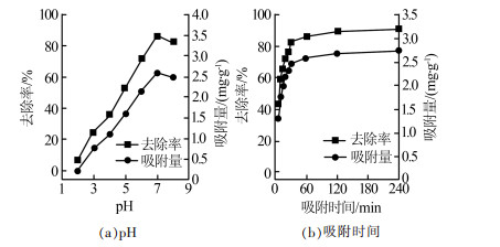 2.2.2 溶液pH和吸附时间对H-AC吸附Mn2+的影响