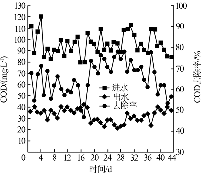 挂膜启动成功后系统对CODCr去除效果如图2所示。