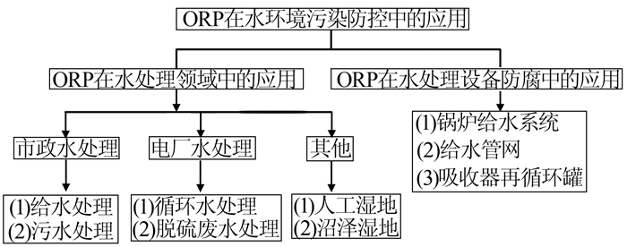 ORP作为反映液相环境条件的一个综合性指标,应用范围极为广泛。ORP在水环境污染防控中的应用可分为2个大方面:水处理领域和水处理设备防腐,具体如图2所示。