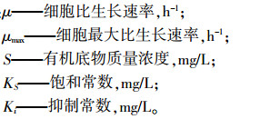 本研究用Haldane方程描述高浓度苯酚降解动力学,方程式: