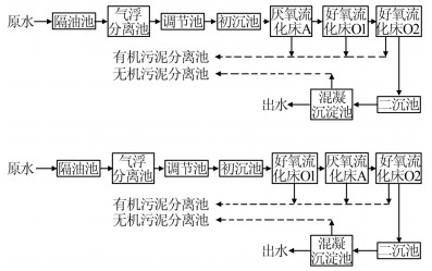迁安焦化污水处理厂一期A/O/O和三期O/A/O工艺流程如图1所示。