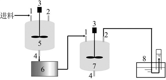 实验反应器采用有机玻璃加工而成,产酸反应器有效容积为5 L,产甲烷反应器有效容积为20 L。反应器顶部装设搅拌机,搅拌速率为60 r/min,外壁缠绕电阻丝,通过电加热器控制反应温度在(35±1)℃。具体流程见图1。