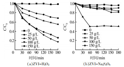 | 图2 铁刨花投加量对不同体系DMSO去除率的影响 |