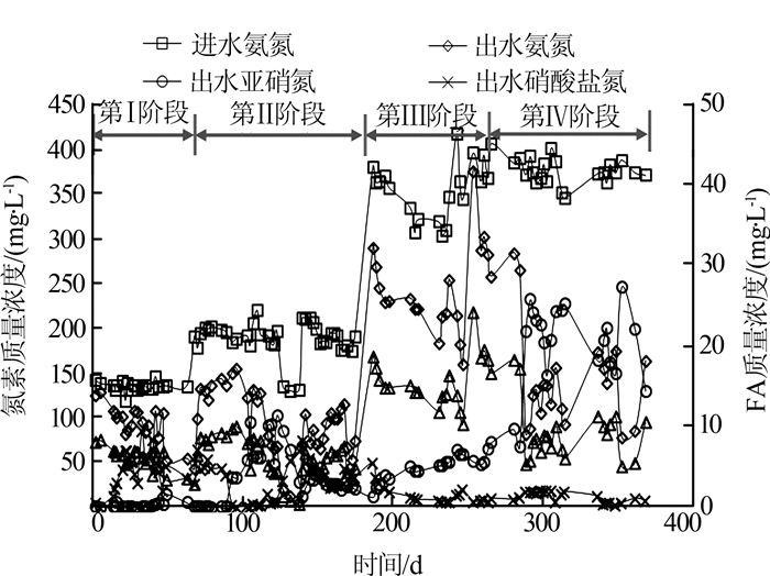 | 图2 不同进水浓度下反应器A中氮浓度的变化 |
