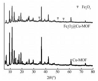 Cu-MOF和Fe2O3@Cu-MOF样品的XRD图谱如图2所示。