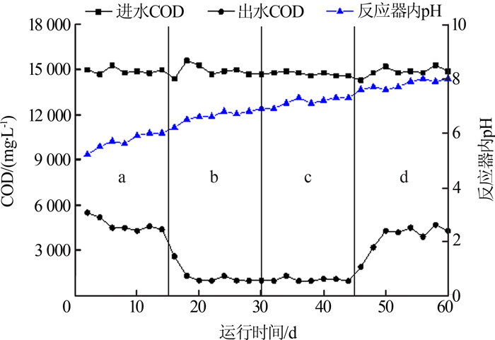 | 图4 pH对EGSB反应器处理效果的影响 a-进水pH=5.5;b-进水pH=6.0;c-进水pH=6.5;d-进水pH=7.0。 |