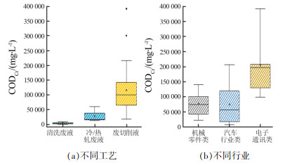 | 图4 不用工艺和行业废乳化液CODCr分布 |