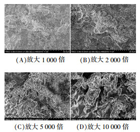 | 图2 Ti/SnO2电极不同倍率SEM图 |
