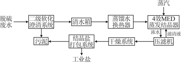“石灰+碳酸钠软化+多效蒸发结晶”工艺流程