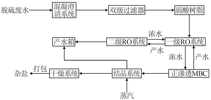 “石灰+碳酸钠软化+离子交换软化+反渗透+正渗透+结晶”工艺流程