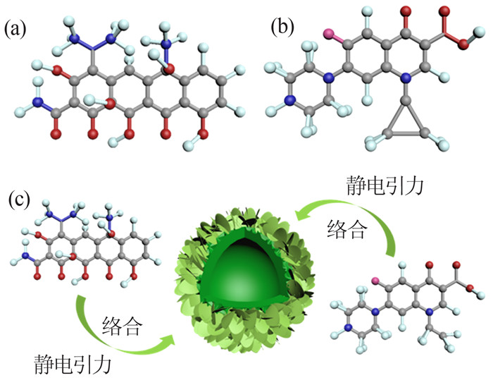 | 图5 TC(a)、CIP(b)分子结构及吸附机理(c) |