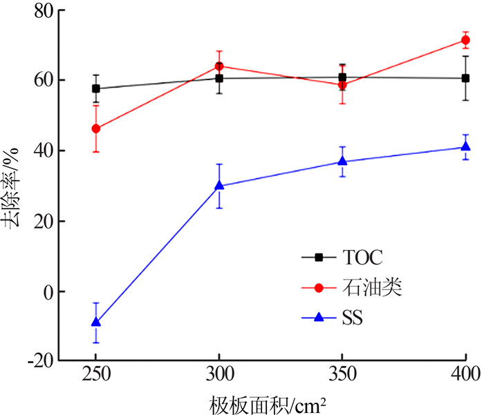 | 图1 极板面积对有机物和悬浮物去除率的影响 |