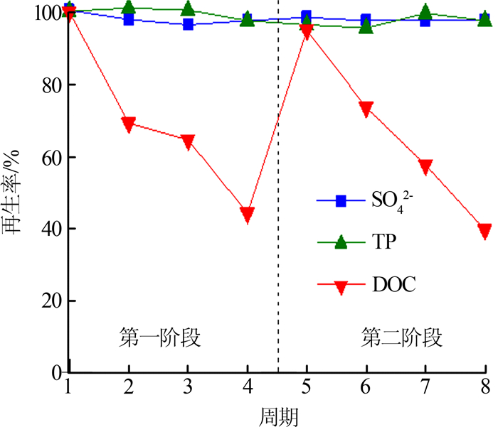 | 图7 处理后脱附液回用8个周期内有机物和无机阴离子的再生效果 |