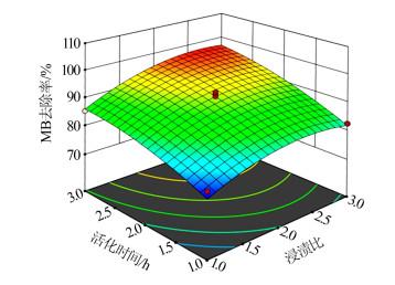 | 编号 | A浸渍比 | B活化时间/h | C活化温度/℃ | MB去除率/% |