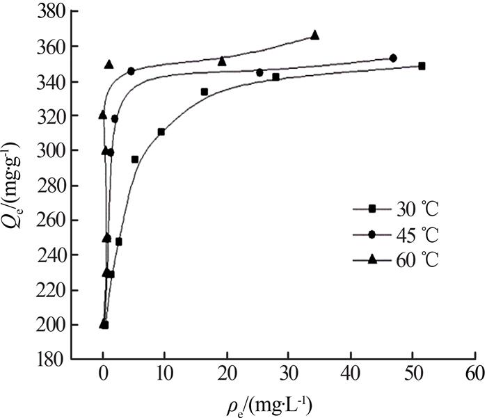 由表 4可知,不同吸附环境温度下的ΔG均为负,且温度越高,负值越大,表明该吸附过程可自发进行,高温可加速该自发过程;ΔS为正,表明该吸附过程为熵增过程,不易发生解吸;ΔH为正,表明吸附为吸热过程,高温对吸附有利,验证了2.3的推测。