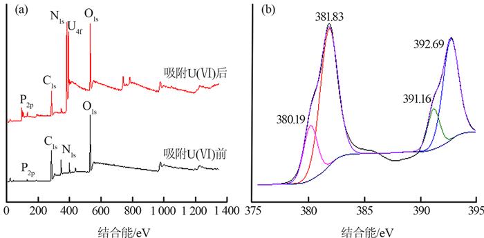 (a)全谱图(b)吸附U(Ⅵ)后的U4f谱图