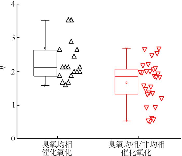 2种臭氧催化氧化工艺的η如图 6所示。