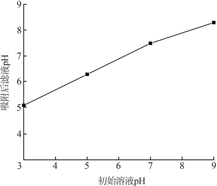 图 5为CTS-PmPD吸附不同pH模拟废水后滤液的pH变化情况。