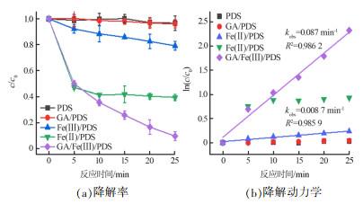 Degradation efficiency(a) and degradation kinetics(b) of CBZ in GA/Fe(Ⅲ)/PDS system