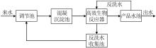 污水首先在调节池中进行水量和pH调节;调节池提升泵将污水提升至混凝沉淀池,经絮凝沉淀处理后,去除污水中的悬浮物,然后自流进入多列并行的高效生物反应器;经高效生物催化处理后污水自流进入产品水池,部分用于高效生物反应器反洗,其余达标排放;反洗水进入反洗水收集池经沉淀后返回调节池,工艺流程见图2。