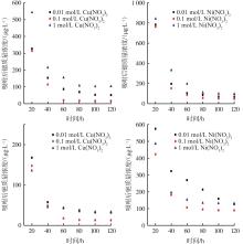不同浓度Cu(NO3 )2 /Ni(NO3 )2 溶液处理后的沸石对锶与铯的去除效果