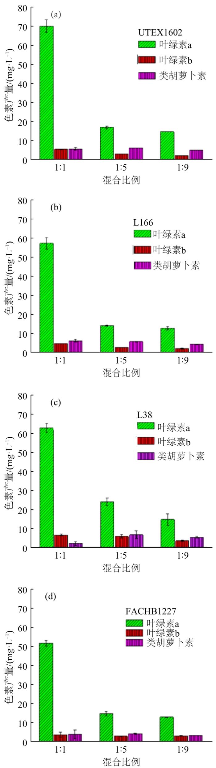 混合废水中4种小球藻的色素产量