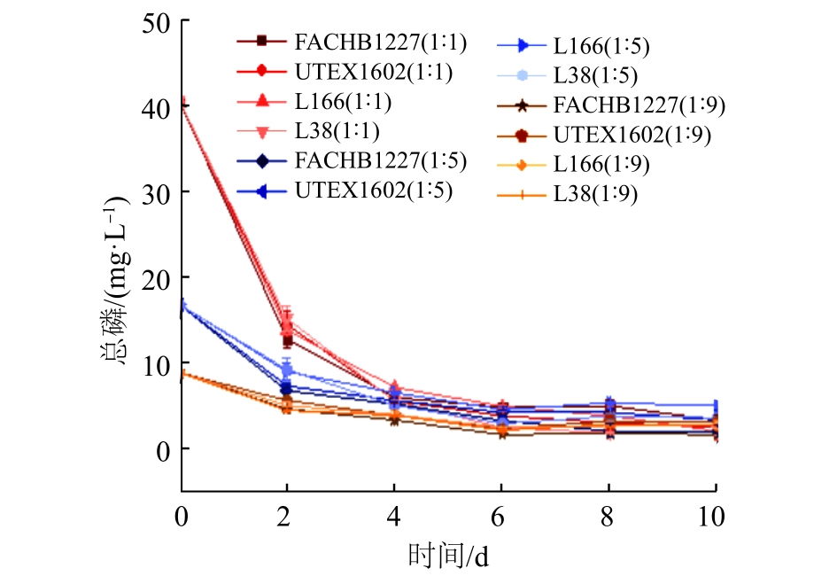 | Fig. 6 Purification effect of four species of Chlorella on TP in mixing wastewater |