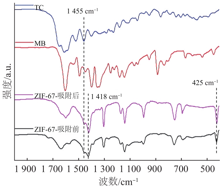 | 图7 吸附TC前后的ZIF?67的FTIR图 |