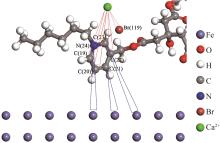 (3)APMC分子结构中吡啶环和Br原子位置的LUMO和HOMO轨道较强,上述基团是APMC分子与Ca2+螯合和碳钢Fe(110)表面吸附的活性位点。烷基链长R对APMC分子与真空中Ca2+的螯合强度不具有显著影响,但随着烷基链长R增大,APMC分子与Ca2+的螯合吸附倾向降低。随着烷基链长R增大,APMC分子真空中碳钢Fe(110)表面的吸附结合强度和吸附倾向均显著增大。