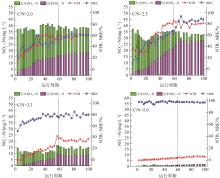 NO3 - -N到NO2 - -N的转化率(Nitrate-to-nitrite transformation ratio,NTR)〔14 〕 ,即NO2 - -N积累率,是指在反应时间内系统增加的NO2 - -N的浓度与系统减少的NO3 - -N的浓度的比值(%),计算方式见式(2)。