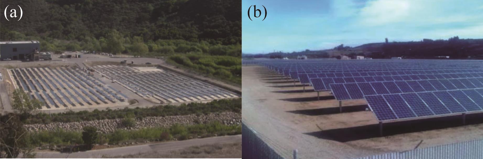 | Fig. 2 Solar photovoltaic system of Hill Canyon wastewater plant(a) and Moorpark reclaimed water plant(b) |