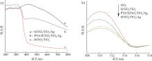 实验研究了SrTiO3/TiO2、SrTiO3/TiO2/Ag和PVA/SrTiO3/TiO2/Ag的UV-Vis DRS光谱及在激发波长254 nm处的TiO2、SrTiO3/TiO2、SrTiO3/TiO2/Ag和PVA/SrTiO3/TiO2/Ag的光致发光(PL)光谱,结果见图4。