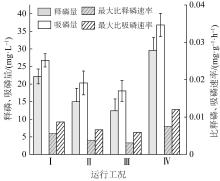实验总结了主流EBPR系统在4个实验阶段的吸磷能力及释磷能力,结果见图5。