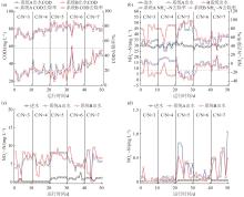 挂膜启动期间COD、NH4+-N、NO3--N、NO2--N变化情况